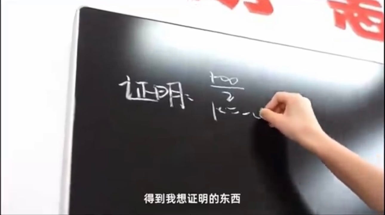 证明所谓“中专数学天才”姜萍其实是一个数学白痴的证据很多,其中最直观、最引起人们兴趣的一条,是她把求和符号“Σ”写成了“/2”。但还是有些人坚持认为她写的就是“Σ”,只不过像“/2”而已,不能因此证明她不懂那是求和符号。不过我注意到,在阿里巴巴达摩院发布的宣传视频中,刚好有一段展示了她在黑板上写求和符号。看了这段视频就知道,她的确不知道那是求和符号,而是当成“/2”来写的。如果知道那是求和符号,就会先写中间的“Σ”,然后写下标表示求和的起点,再写上标表示求和的终点。但姜萍是从上往下一路写下来的,表明她不知道那是求和。另外,因为这是求和符号,所以下标要写得很小,长度不应该超过“Σ”;但姜萍把下边一串数字写得很长,不是下标了。也就是说,她误以为那是另外一个式子。看了这段视频,应该不会再有人怀疑她真的是把“Σ”写成“/2”了。